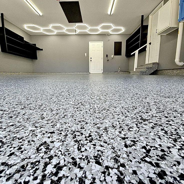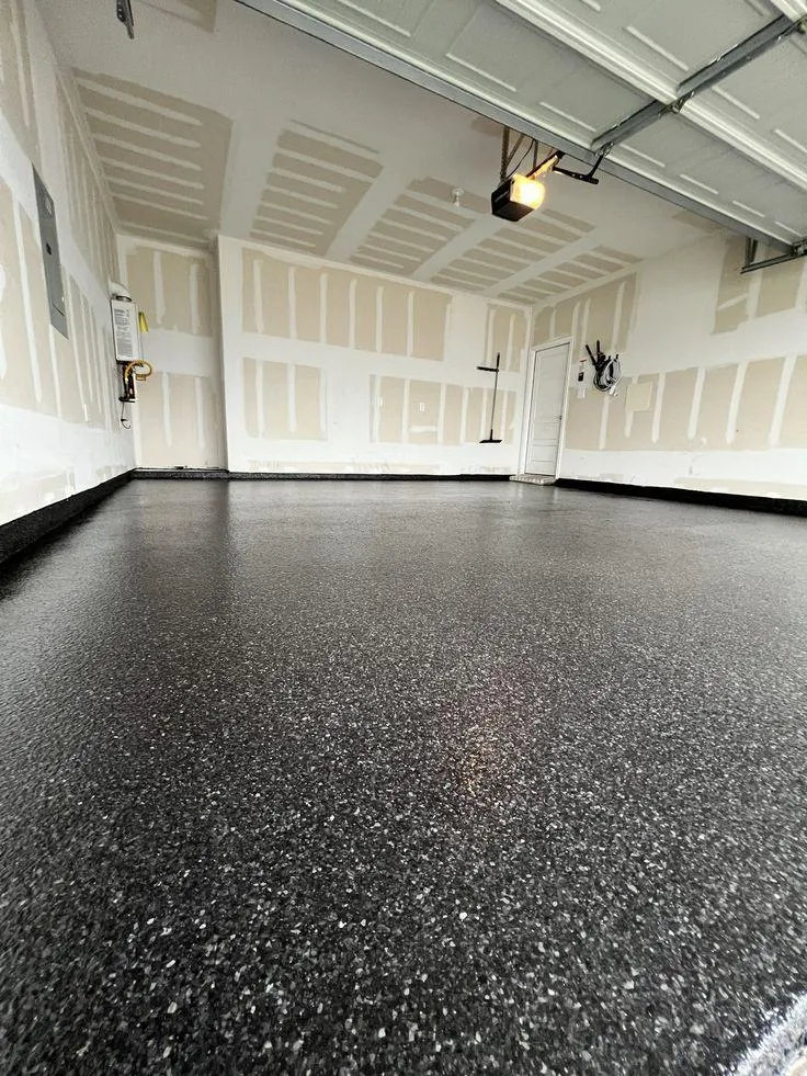 A multi-layered system comprising an epoxy base coat and vinyl flake chips, sealed with a polyaspartic or polyurethane topcoat. Water, stain, chip, and scratch-resistant — ideal for garages, patios, and busy commercial spaces.